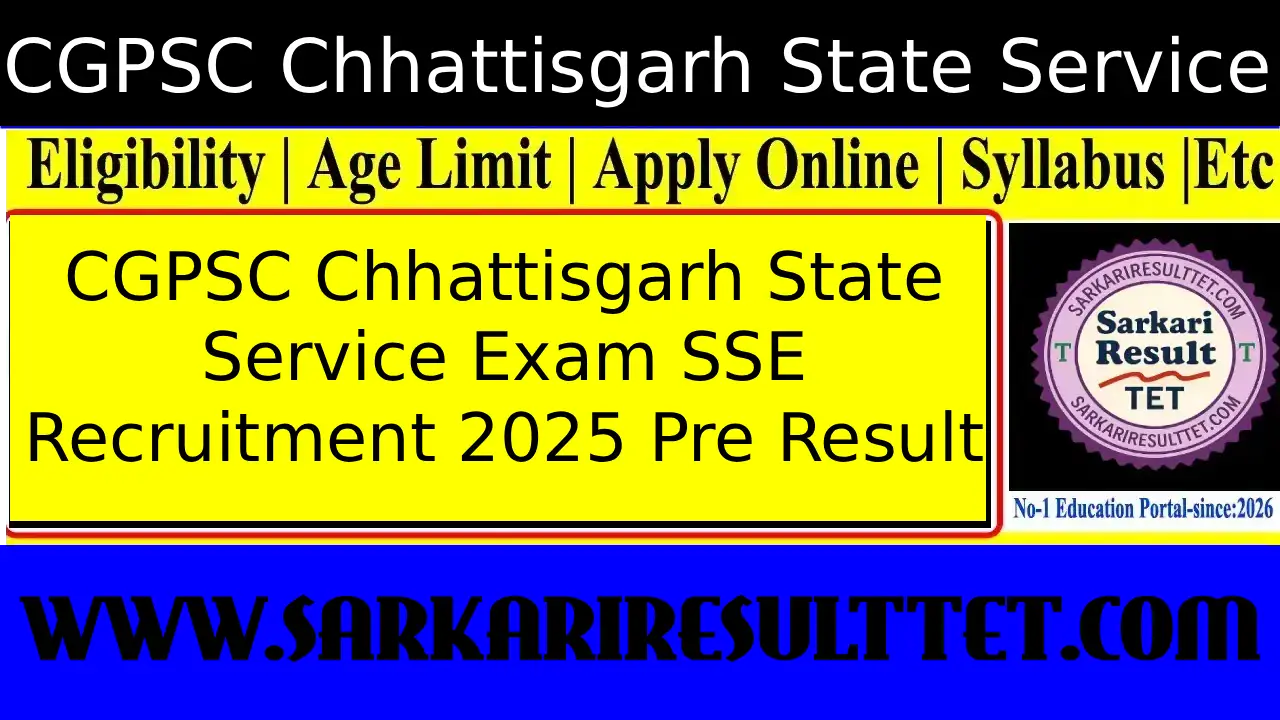 Chhattisgarh Public Service Commission (CGPSC) Chhattisgarh State Service Examination CGPSC Pre SSE 2025 Advt No. : 06/2025 |
